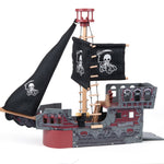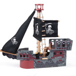 Dieses Holzschiff mit schwarzen Segeln, verziert mit einem Totenkopf und gekreuzten Knochen, wurde wie geschaffen für Entdecker imaginärer Meere und flößt allen feindlichen Schiffen Furcht ein.